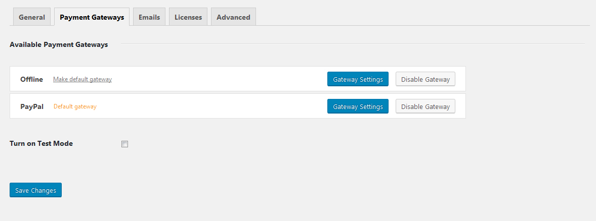 - Two available payment gateways are Offline Gateway and Paypal Gateway.